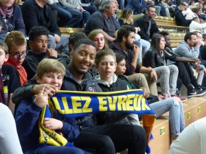 Le 25 avril 2017 dernier, grâce à Pascal Duval, salarié de Moissons Nouvelles, et son épouse Corinne, nos jeunes de la maison d’enfants à caractère social avaient pu assister à un match de l’ALM Évreux Basket. L’équipe évolue en Pro B (2e division du championnat de France). 22 enfants et 4 éducateurs s’étaient rendus au bord du terrain. Ils avaient applaudi l’équipe, gagnante contre Denain. Mais 10 joueurs d’Evreux contre « Deux Nains », c’était facile !!!!